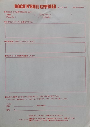 ・ROCK'N'ROLL GYPSIES ライブアンケート |