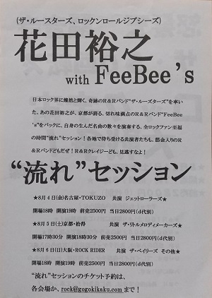 | ・花田裕之 with FeeBee's ”流れ”セッション 2006.8.4 名古屋TOKUZO/8.5 京都磔磔/8.6 大阪ROCK RIDER |