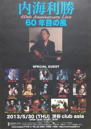 ・「内海利勝 60th Anniversary Live 60年目の風」 2013.5.30 渋谷club asia |