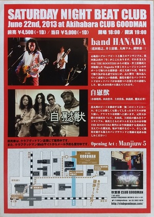 | ・band HANADA / 自慰獣 2013.6.22 秋葉原CLUB GOODMAN (上段右のフライヤーの裏面) |