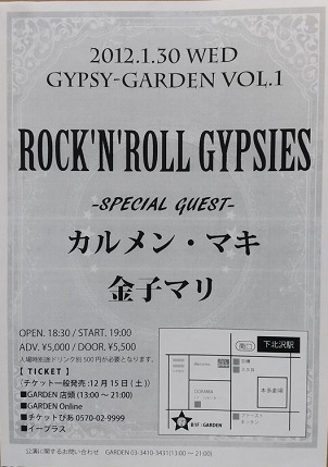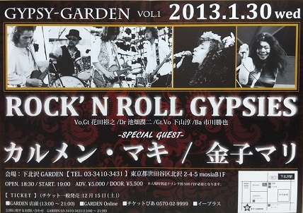 ・「GYPSY-GARDEN VOL.1」 2013.1.30 下北沢GARDEN ROCK'N'ROLL GYPSIES (GUEST カルメン・マキ/金子マリ) |