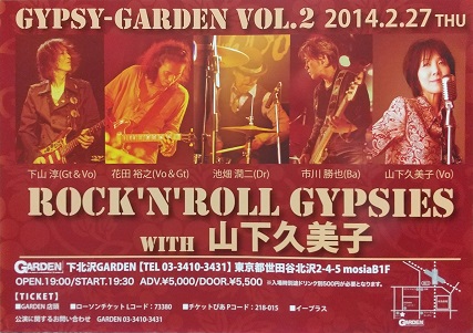 ・「GYPSY-GARDEN VOL.2」 2014.2.27 下北沢GARDEN ROCK'N'ROLL GYPSIES with 山下久美子 |