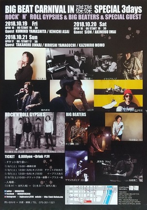 | ・「BIGBEAT CARNIVAL IN 磔磔 SPECIAL 3DAYS」 2018.10.19 & 20 & 21 京都磔磔 |