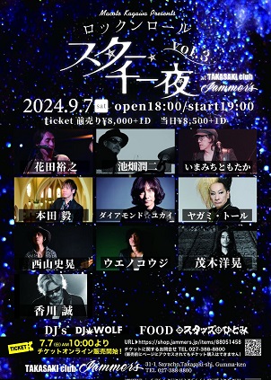 | ・ロックンロールスター千一夜 Vol.3 2024.09.07 高崎CLUB JAMMER'S ![]() (Xより) |