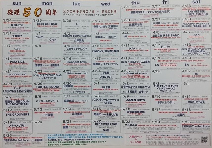 | ・京都磔磔 マンスリースケジュール (ウルフルケイスケバンド/三宅伸治/花田裕之 2024.03.03) (提供:ドクターパイレーツさん。ありがとうございます) |
