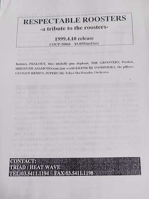 ・さんちゃんさんより情報&画像提供いただきました。ありがとうございます。 こちらは「RESPECTABLE ROOSTERS」発売時の日本コロンビアの宣伝用資料です。 レコード会社の内部資料ということもあり、アップするのは表紙のみとさせていただきます。これまためちゃくちゃ貴重すぎる一品。 (2024/6/7 追記) |