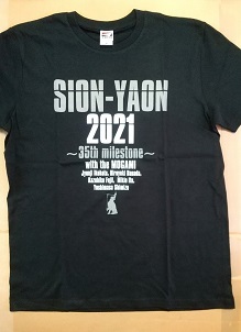 ・2021年。「SION-YAON2021」のTシャツ。THE MOGAMIのメンバーとして花田さんも参加。バンドメンバーとして名前が書かれている。 |