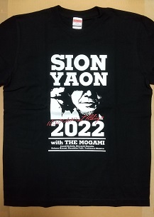 ・2022年の「SION-YAON2022」のTシャツ。私はこの年もSIONのYAONは見れなかったが、左記の通販サイトで購入。やはりバンドメンバーとして花田さんの名前が書かれている。 |