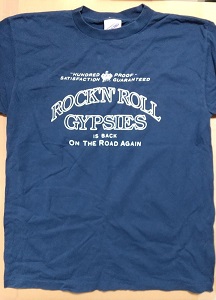 ・95年の「ROCK'N'ROLL GYPSIES」のロゴTシャツ。私はこのデザインが好きでよく着ていた(と言ってもライブの時のみ)が、長年着ているわりには首の部分とかくたびれていない。この時代はグッズもいいものが多い。 |